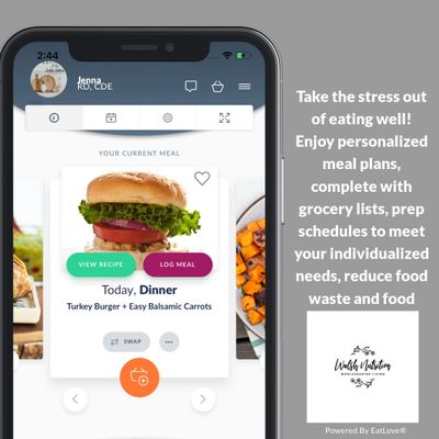 Pair us with a leading meal planning program, designed to help us help you in the most detailed and customizable way; that lets you track your intake, taily your grocery needs, and even swap out a planned meal for a sudden take-out dish.